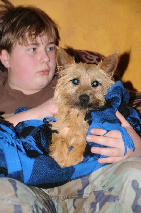 Then he sat with my son, Jack, getting dry.