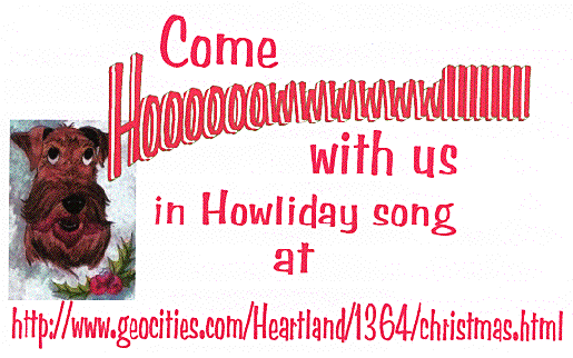NOW PLAYING: JINGLE BELLS (DOGS' VERSION) SKRENNINGER USA This is the envelope This year's card was designed by Sally Babcock A Retrospective of the Airedale Art of Sally Babcock is HERE FORNELLI CANADA McGwin the ADT, Ch. Embar's Vagabond Lover [Rudy] and the little one in the background is Ch. Harrington's Tiger Lilly, our Australian Terrier. This is the envelope This card was designed by Sally Babcock PAGE 2
