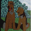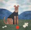 Acknowledgment: The quilt square in the third row, third column was created by Carol Schwaderer Dickinson using an original Airedale of her creation running with a boy with balloons from an old Aunt Martha Overall Sam pattern.