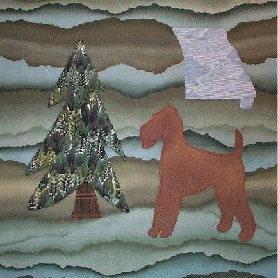 Other info: Dog:This is Indy Babcock, who is Sally Babcock's Airedale. They live in St. Louis, Missouri. There is a cloud in the shape of Missouri in the upper right hand corner.
