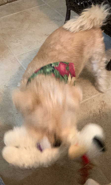 So, on Christmas morning, I (reluctantly) gave SweeTea her Howliday Gift . . .
