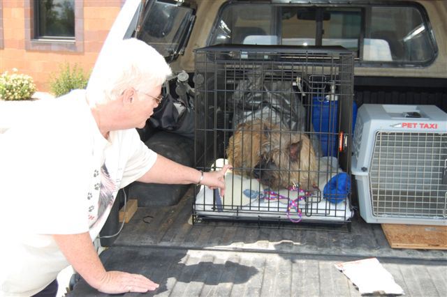 Well, that settled it; I was bound & determined he was going to come around, and by Tuesday he had . . . a tiny bit. Instead of gently pulling his leash to make him come to me, I would pat my hand on the floor; he would come for a few ear scratches and off he'd go!!