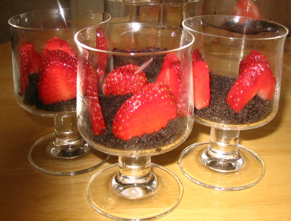 . . . and line the glasses with slices of the two strawberries I have left . . .