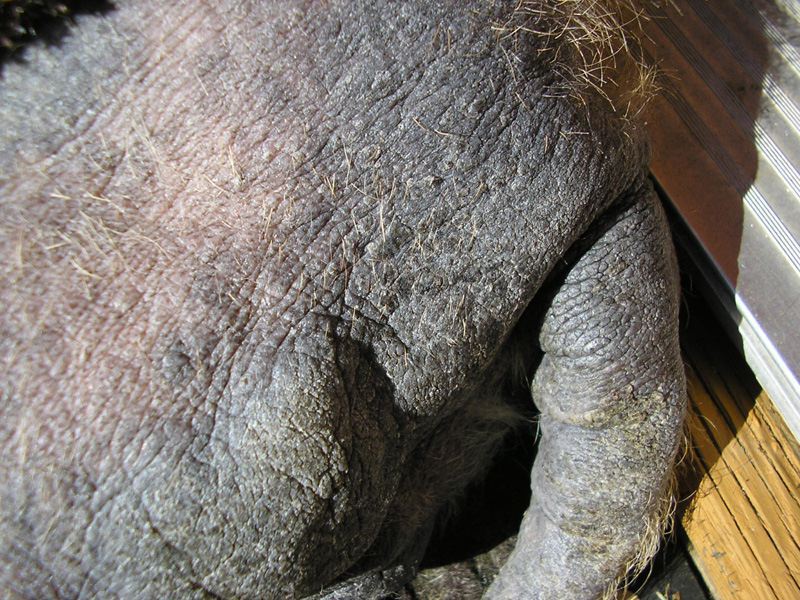 We are just so thankful that little Ruth is on the road to recovery; it will take a few months to see any big differences. She is feeling better and now mixes with the other dogs after having started antibiotics, healthy dog food, clean crate/bedding, protective cotton baby clothes, the company of other dogs and hugs & kisses from her human protectors. She follows Ron & me around and is getting her Cairnitude back.