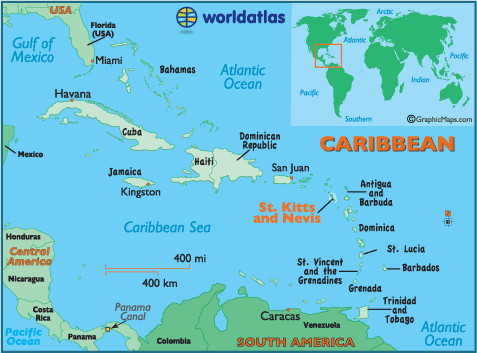 The smaller island of Nevis lies about two miles southeast of Saint Kitts,