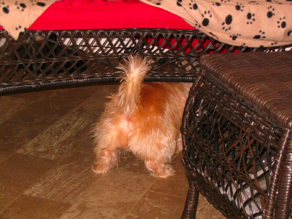 This is Buddy's favorite hiding spot; I guess Teddie wanted to see why . . .