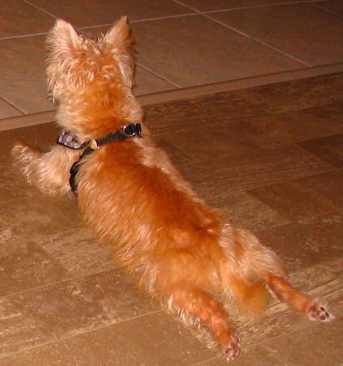 For quite some time, Teddie lay on the floor, staring at the front door,
