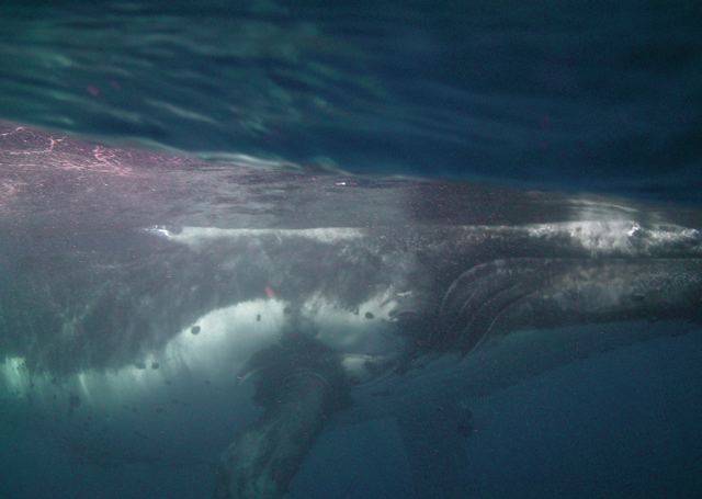 Then Mum showed up . . . . Back in the water . . . . Then Dad showed up. Suddenly there I was . . . whales to the left, whales to the right, whales behind . . . and right in the middle, I just floated in wonder.